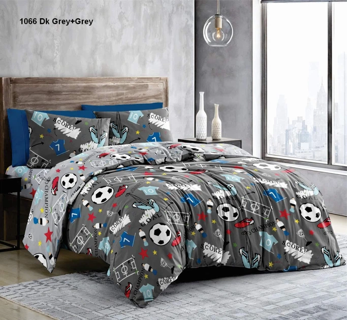 Полуторний Комплект дитячої постільної білизни Футбол. Бязь, Коттон, Сіра.