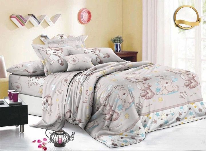 Полуторний Комплект дитячої постільної білизни Тедді. Бязь, Коттон, Бежева.