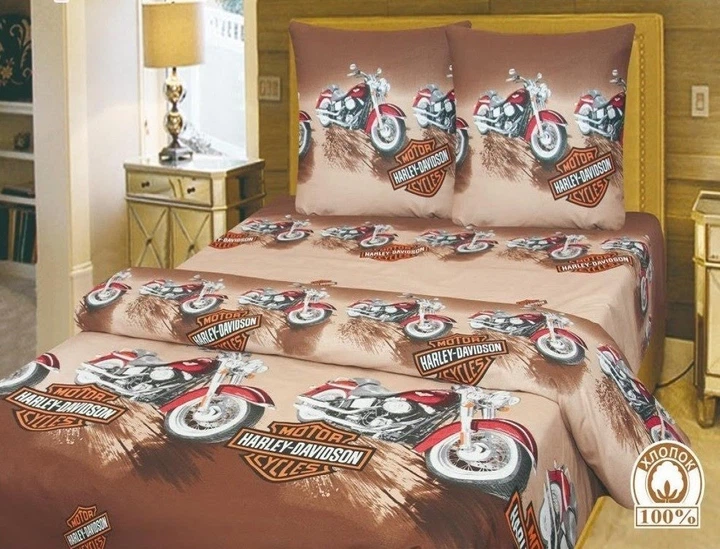 Комплект дитячої постелі з мотоциклами "Харлей Девідсон" Tirotex 1.5-спальний 145х215 см Бязь (ТТБ031-1)