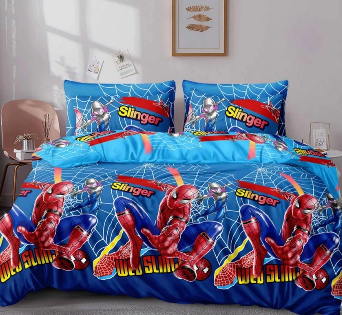 Комплект постільної білизни Полуторний Дитячий бязь голд люкс 150х220 см Спайдермен людина павук синій