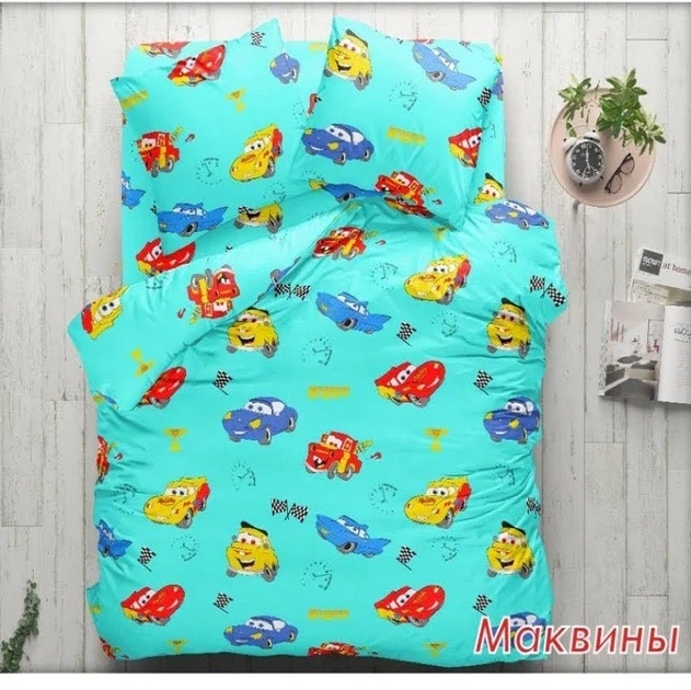 Комплект дитячої постільної білизни Тачки Маквины Tirotex 1.5-спальний 145х215 см Бязь (ТТБ036-1)