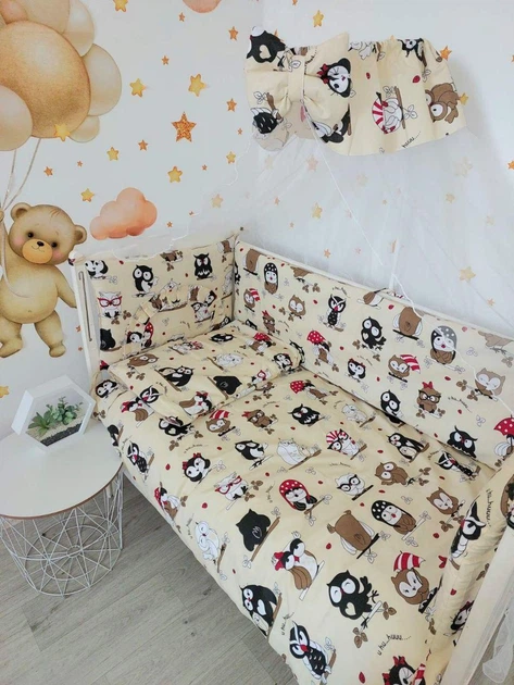 Постільна білизна дитяча комплект 9 в 1 совушки на білому