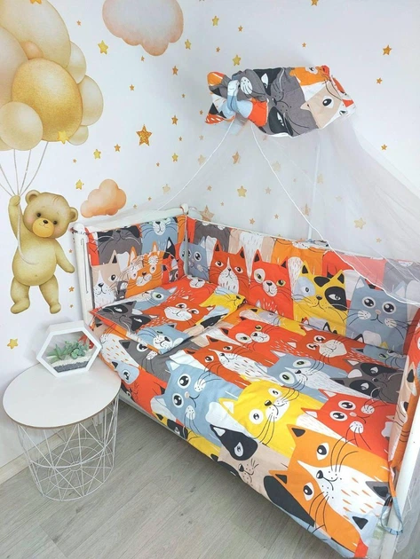 Постільна білизна дитяча комплект 9 в 1 котики на світлому