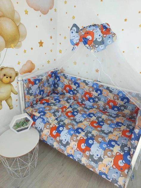 Постільна білизна дитяча комплект 9 в 1 медведики різнокольорові