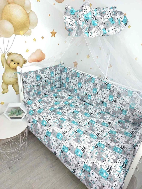 Постільна білизна дитяча комплект 9 в 1 котики сірий