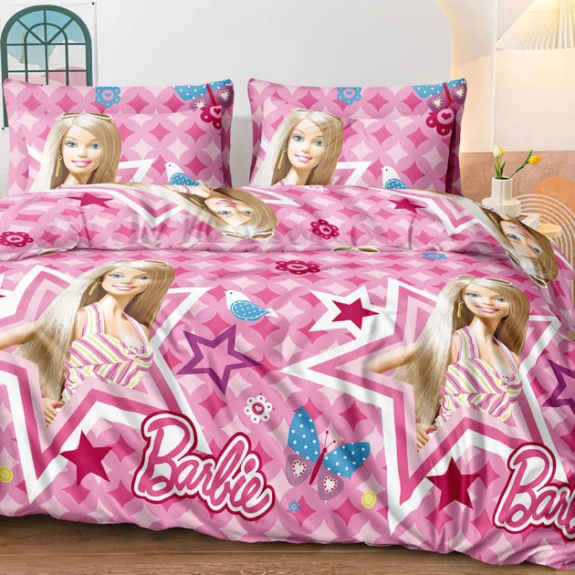 Дитяча півтораспальне постільна білизна KrisPol бязь Lux "Барбі" Рожевий