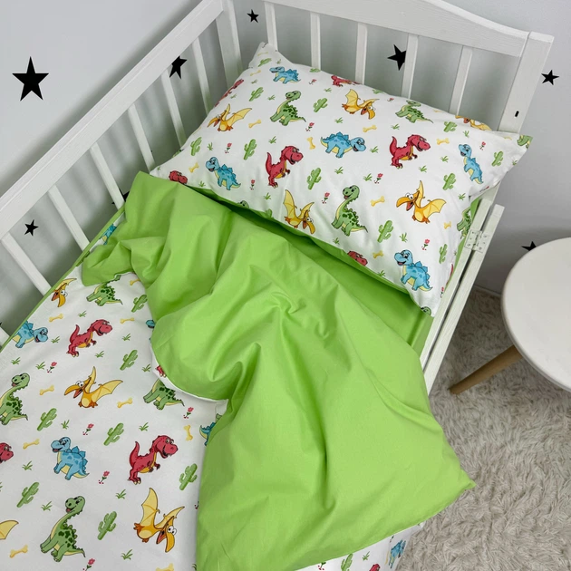 Постільна білизна у ліжечко 120х60 см для хлопчика Oh My Kids «Динозаврики» зелений