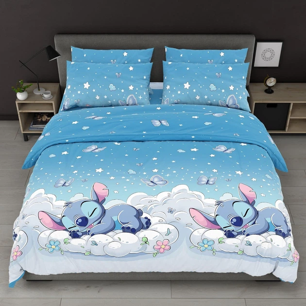 Постільна білизна бавовняна Сонний стіч Півтораспальна 150 x 220 Бязь Блакитна 70 х 70