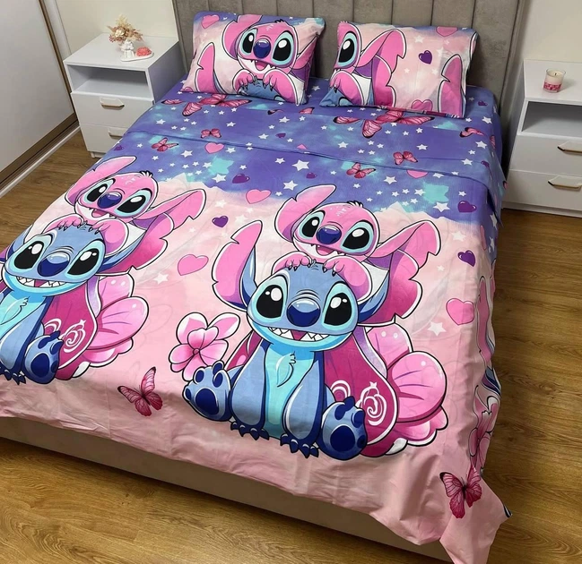 Постільна білизна бавовняна Закоханий стіч Півтораспальна 150 x 220 Бязь Рожева 70 х 70