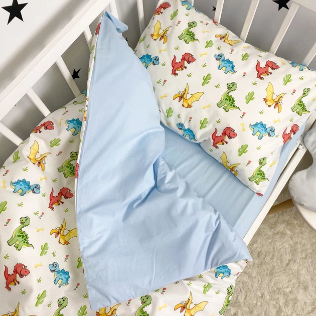 Дитяча постільна білизна для хлопчика в ліжко 120х60 см Oh My Kids «Динозаврики» блакитний (підковдра 140х110 см)