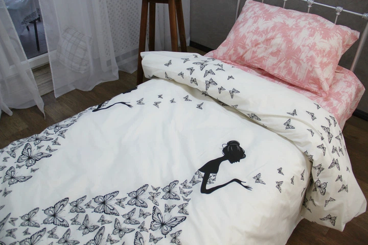 Постільна білизна Vpostelke поплін Джулія Односпальна 150х220 см біла з рожевим