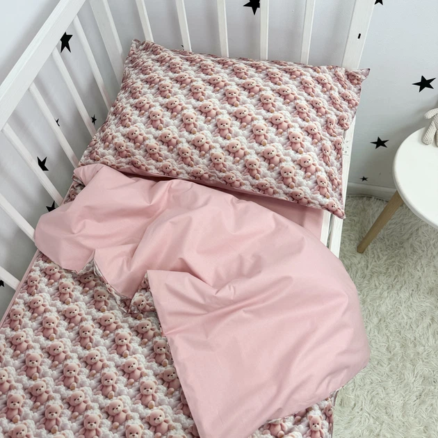 Натуральний комплект постільної білизни для дитячого ліжка 120х60 см Oh My Kids «Ведмедики у хмаринках» пудровий