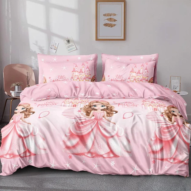 Постільна Білизна Рожево Дитяча Принцеси Наволочки На Подушки Простирадло Підковдра Комплект Полуторний на резинці (372336)