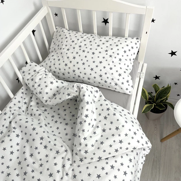 Постільна білизна у дитяче ліжечко 120х60 см "Зірки" сірий (підковдра 140х110 см)