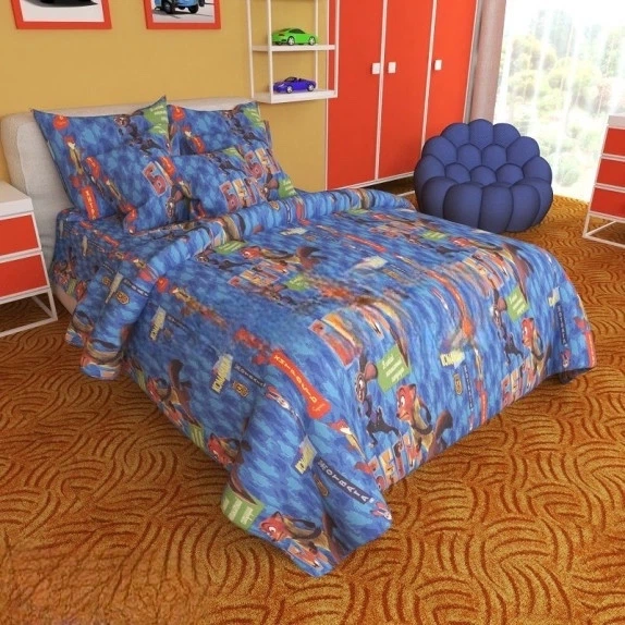 Полуторний комплект постільної білизни з мікросатину Тачки 2