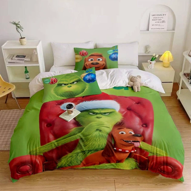 Полуторний комплект постільної білизни з мікросатину Новорічний Грінч