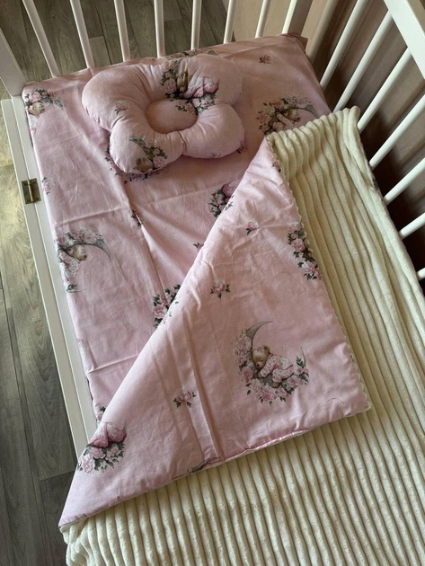 Постільний набір білизни МАНЮНЯ з бязі для ліжечка 7898 см Молочний з рожевим