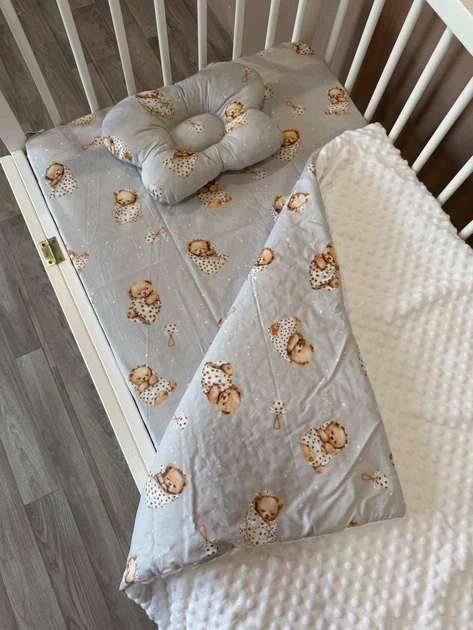 Постільний набір білизни МАНЮНЯ з бязі для ліжечка 7898 см Сірий Ведмедики