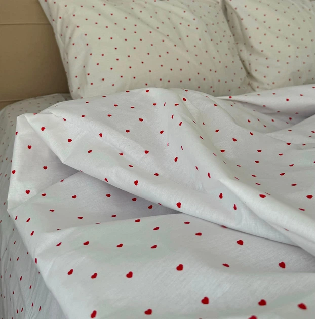 Комплект постільної білизни в ліжечко Дитячий LavSon Ранфорс Поплін Lux 110х140 Червоні сердечка