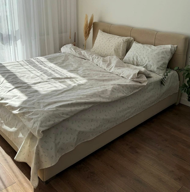 Комплект постільної білизни в ліжечко Дитячий LavSon Ранфорс Поплін Lux 110х140 Листочки молочний