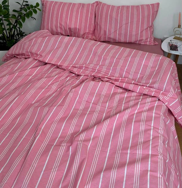 Комплект постільної білизни в ліжечко Дитячий LavSon Ранфорс Поплін Lux 110х140 Рожева смужка
