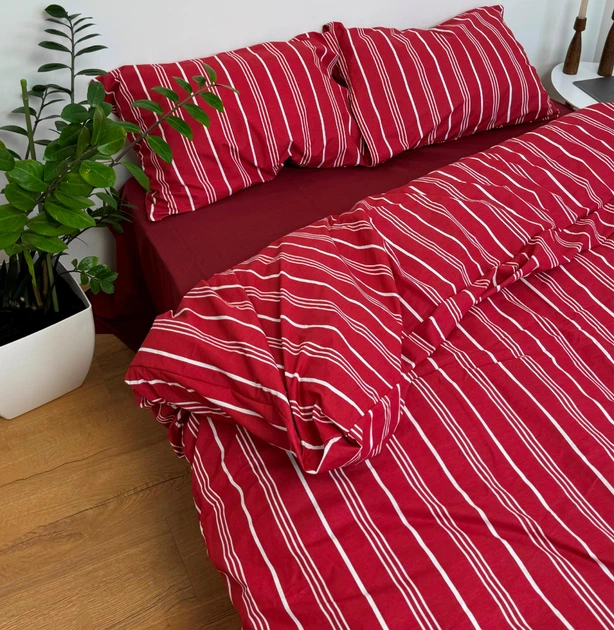 Комплект постільної білизни в ліжечко Дитячий LavSon Ранфорс Поплін Lux 110х140 Червона смужка
