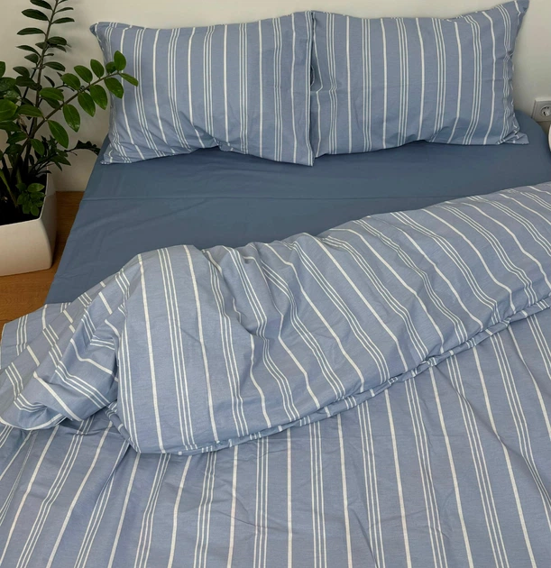 Комплект постільної білизни в ліжечко Дитячий LavSon Ранфорс Поплін Lux 110х140 Блакитна смужка