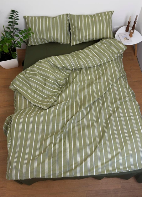 Комплект постільної білизни в ліжечко Дитячий LavSon Ранфорс Поплін Lux 110х140 Оливкова смужка