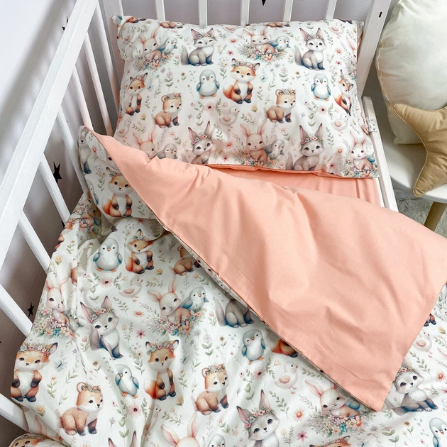 Дитяча постільна білизна для дівчинки з підковдрою 140х110 см Oh My Kids «Зайчики Лисички» персиковий