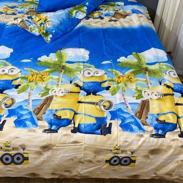 Полуторний комплект постільної білизни Міньони під пальмами МЕ3 Фланель 150х220 см