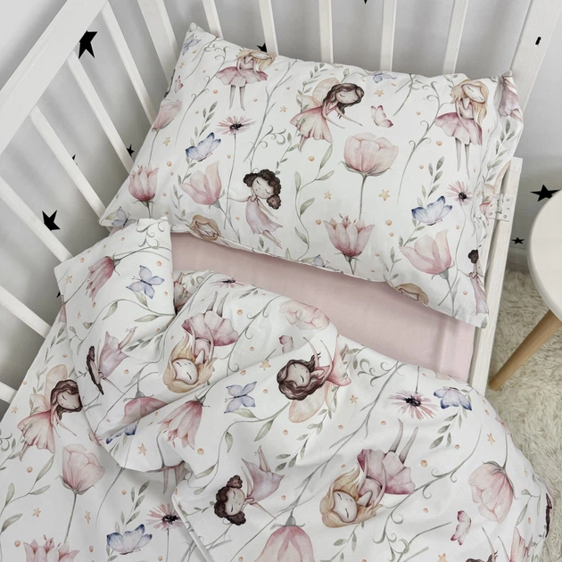 Дитячий комплект постільної білизни у ліжечко 120х60 см для дівчинки Oh My Kids «Феєчки» рожевий (підковдра 140х110 см)