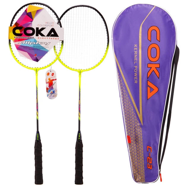 Набір для бадмінтону COKA C-23 – 2 сталеві ракетки в чохлі (чорно-салатовий дизайн)