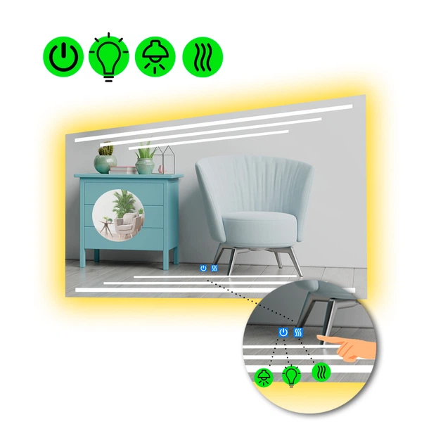 Прямокутне дзеркало з LED підсвіткою 90 на 60 см, з двома сенсорами та підігрівом, модель Emma La Mir (Emmag78)