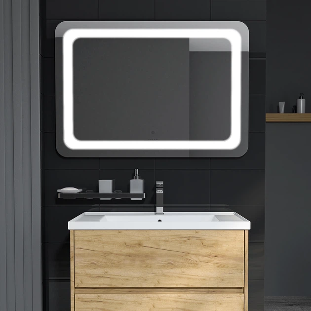 Прямокутне дзеркало з LED підсвіткою 100 на 80 см, з підігрівом та двома Механічними вимикачами, модель Amado La Mir (Amadog