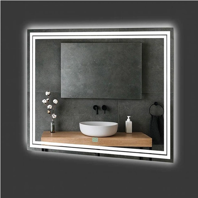 Прямокутне дзеркало з LED підсвіткою 80 на 70 см, з двома сенсорами та лінзою з підсвіткою, модель Francisca La Mir (Francis