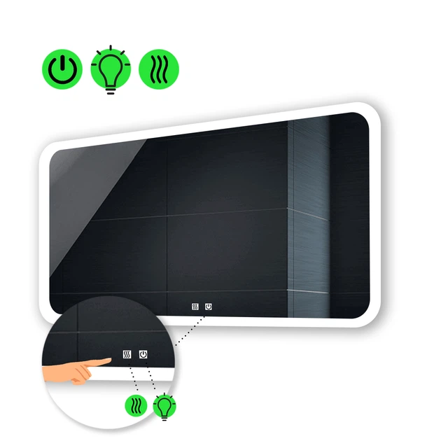 Прямокутне дзеркало з LED підсвіткою 90 на 80 см, з двома сенсорами та підігрівом, модель Emma La Mir (Emmag100)