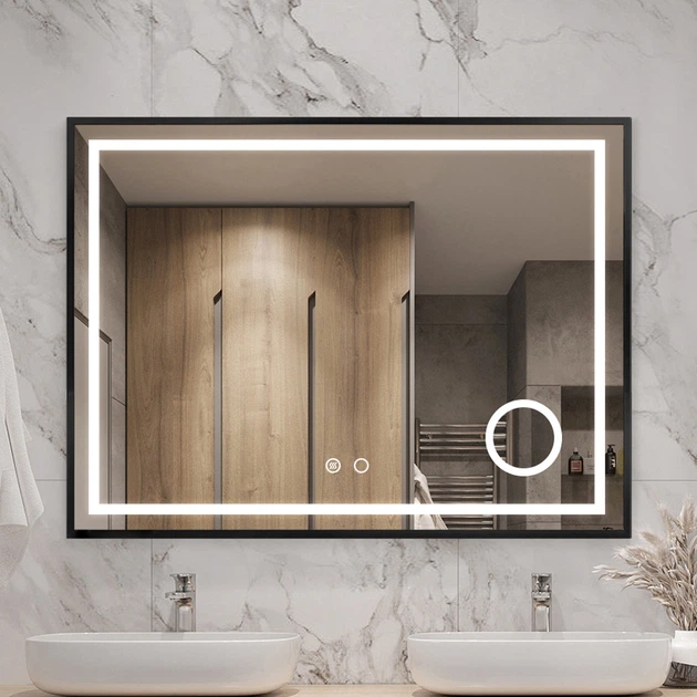 Дзеркало в рамі EMILIA з LED-підсвіткою + сенсорне керування + підігрів + лінза