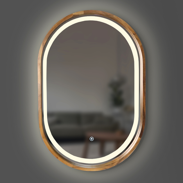 Дзеркало капсула дерев'яне з LED-підсвіткою Luxury Wood Freedom Natural Walnut Горіх 50x80 см