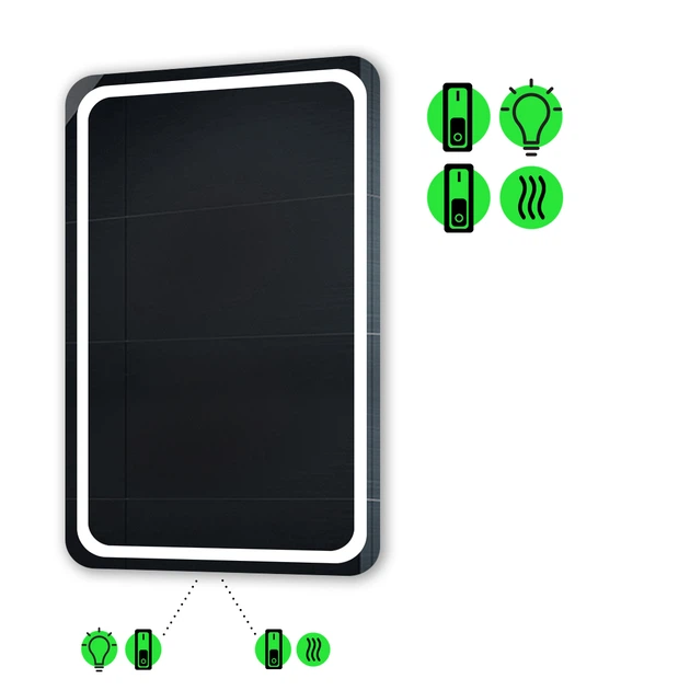 Закруглене дзеркало з LED підсвіткою 60 на 90 см, з підігрівом та двома Механічними вимикачами, модель Anvi La Mir (anvi68)