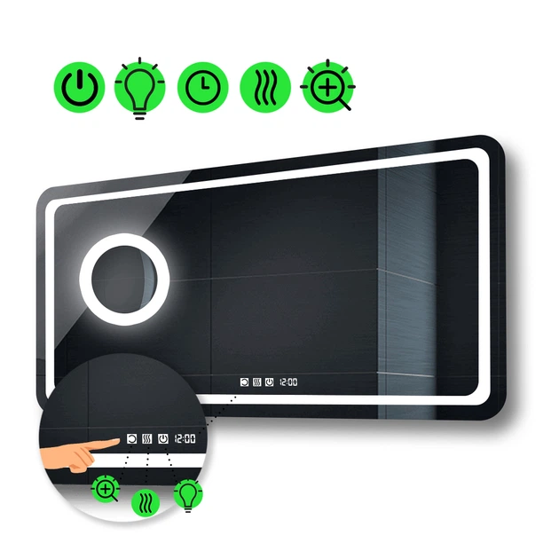 Прямокутне дзеркало з LED підсвіткою 100 на 60 см, з трьома сенсорами, підігрівом,та лінзою з підсвіткою модель Emma La Mir