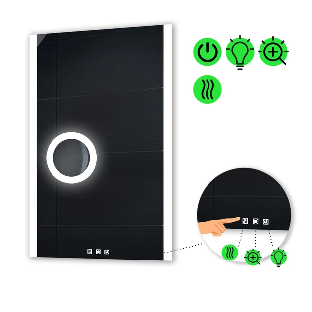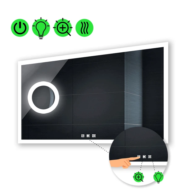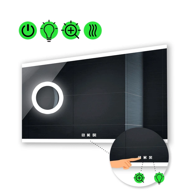 Прямокутне дзеркало з LED підсвіткою 90 на 80 см, з трьома сенсорами, підігрівом,та лінзою з підсвіткою модель Ines La Mir (