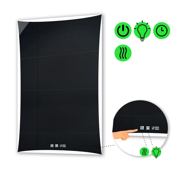 Прямокутне дзеркало з LED підсвіткою 80 на 100 см, з двома сенсорами, годинником та підігрівом, модель Simphony La Mir (Simp