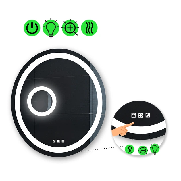 Кругле дзеркало з LED підсвіткою 80 на 80 см, з трьома сенсорами, підігрівом,та лінзою з підсвіткою модель Amica La Mir (Ami