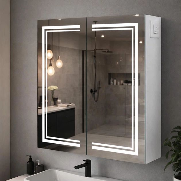 Дзеркальна шафа у ванну G15-60 см з LED-підсвічуванням «Meridian» 756017 см (двостулкова)
