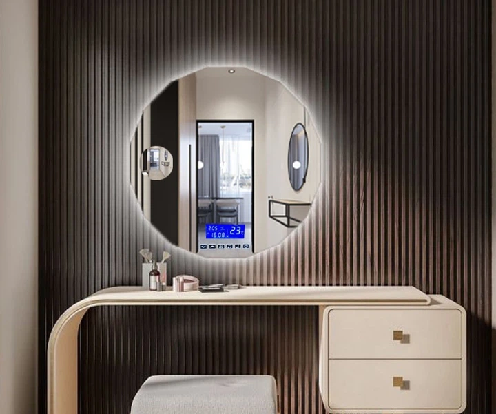 Дзеркало A-6 з LED-підсвічуванням (120 х 100), годинником та лінзою