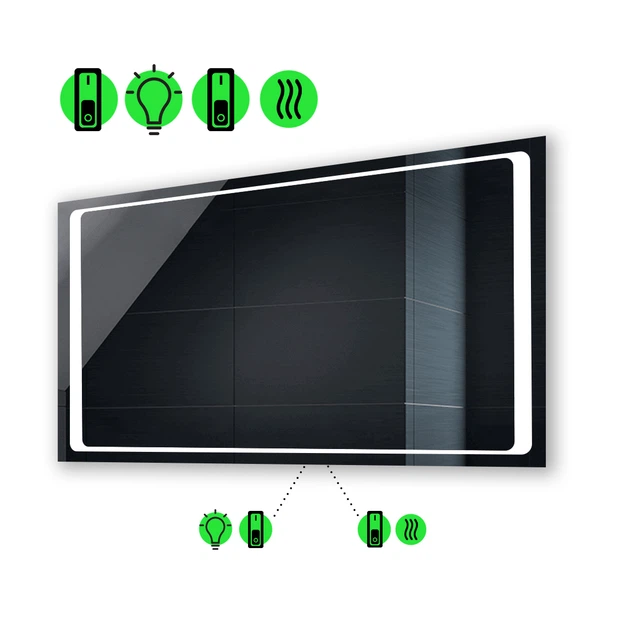 Прямокутне дзеркало з LED підсвіткою 70 на 110 см, з підігрівом та двома Механічними вимикачами, модель Karnet La Mir (karne
