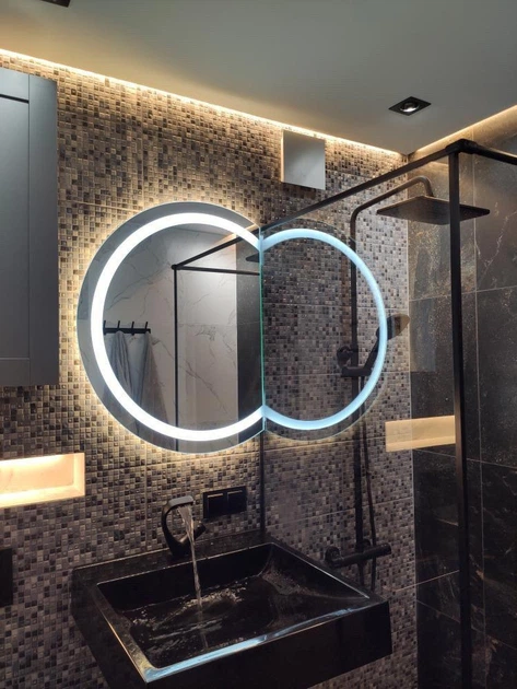 Напівкругле дзеркало з фоновим та фронтальним освітленням 110*90см, подвійний сенсор
