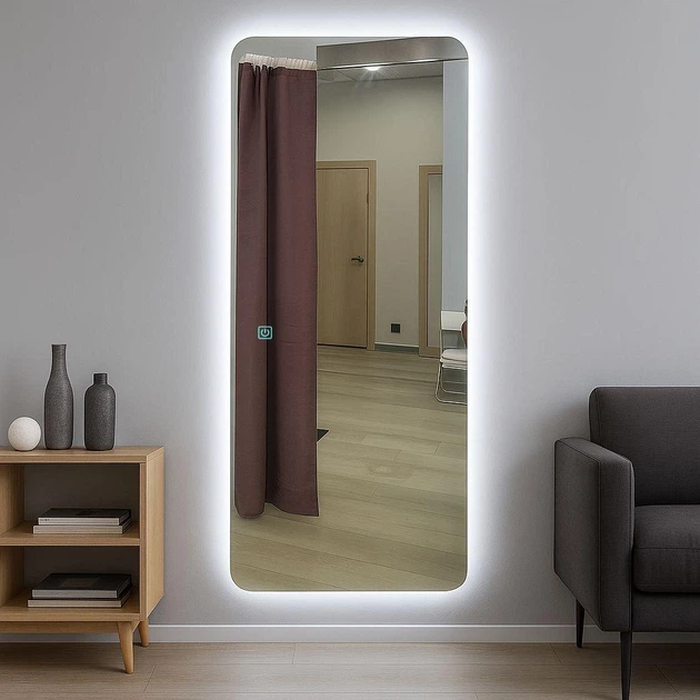 Дзеркало із закругленими кутами LMH - 07 (170х70) з фоновим LED підсвічуванням + Сенсорна кнопка