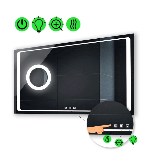 Прямокутне дзеркало з LED підсвіткою 80 на 70 см, з трьома сенсорами, підігрівом,та лінзою з підсвіткою модель Emma La Mir (