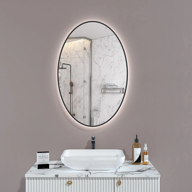 Закруглене дзеркало з LED підсвіткою 100 на 60 см, з трьома сенсорами, підігрівом,та лінзою з підсвіткою модель Anvi La Mir